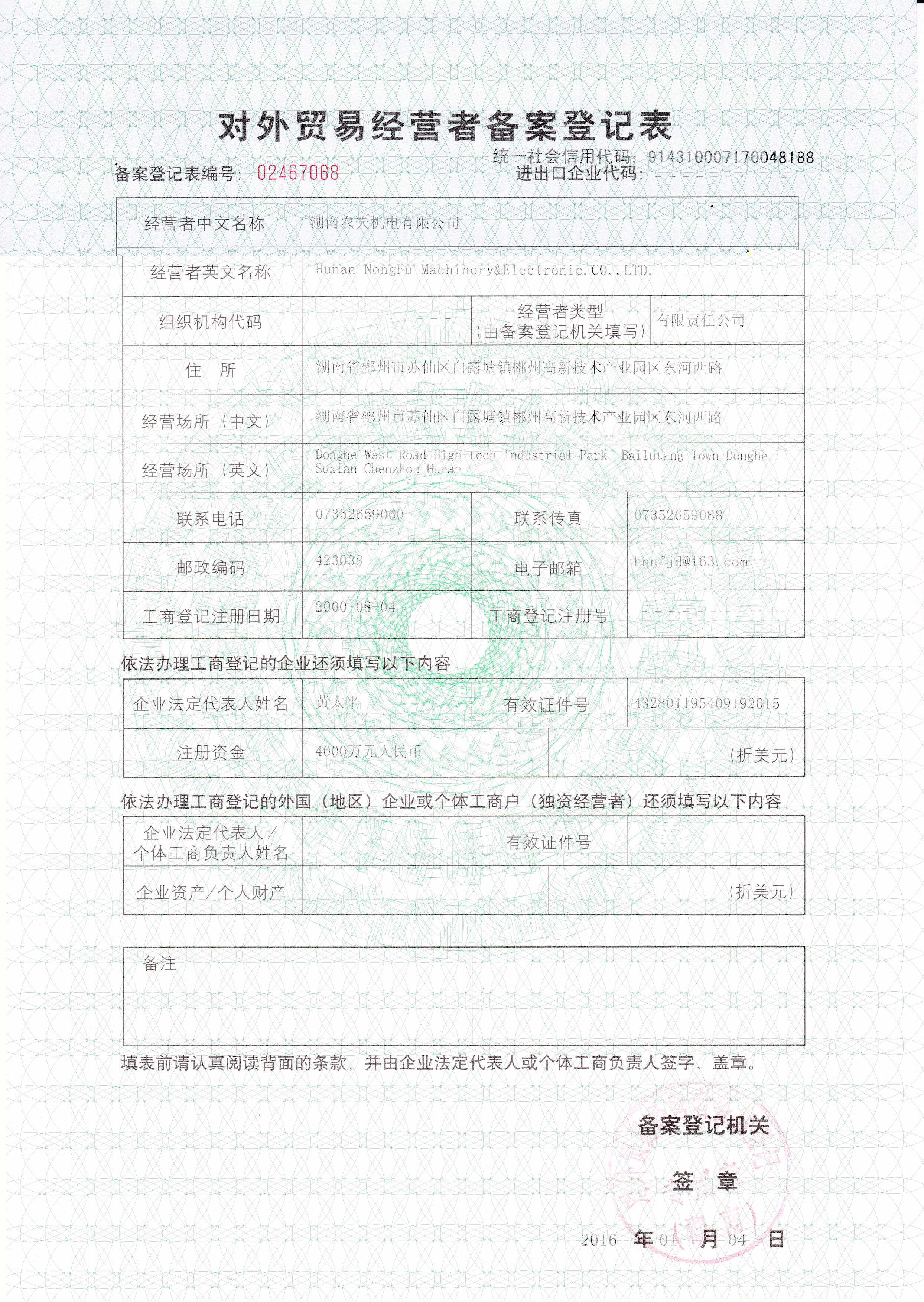 2016备案登记表